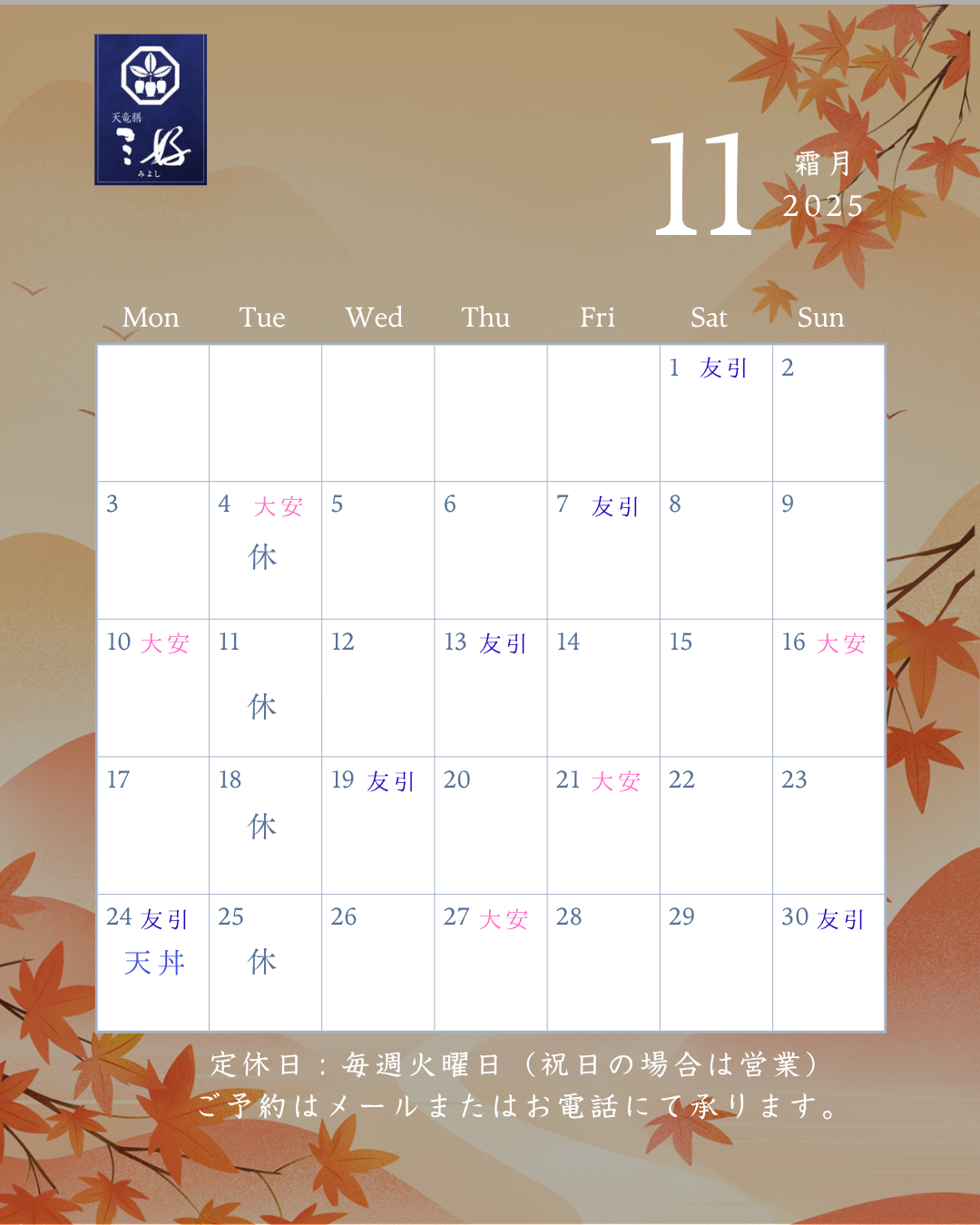 さて本日は2025年11月の営業日についてお知らせいたします。